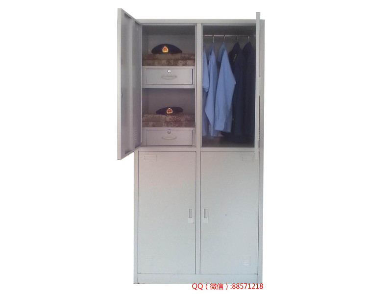 鐵皮后勤基建營房專用物品柜,加工定做加厚款結實耐用的營房工具儲物柜,營房更衣柜,四門營房專用士官柜可以用來存放士兵專用的衣物,鞋帽等物品,柜子為上下雙開門結構,門內(nèi)有衣桿、隔層,抽屜等,柜體采用1.0mm以上厚度的板材加工定做。